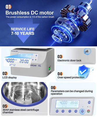 Ένα ευέλικτο φυγοκεντρικό μηχάνημα πάγκου χαμηλής ταχύτητας με αερόψυξη, που χρησιμοποιείται ευρέως σε βιοχημικά εργαστήρια και κλινικές εξετάσεις νοσοκομείων για ποιοτική ανάλυση ορού, πλάσματος και φαρμακευτικών παρασκευασμάτων.